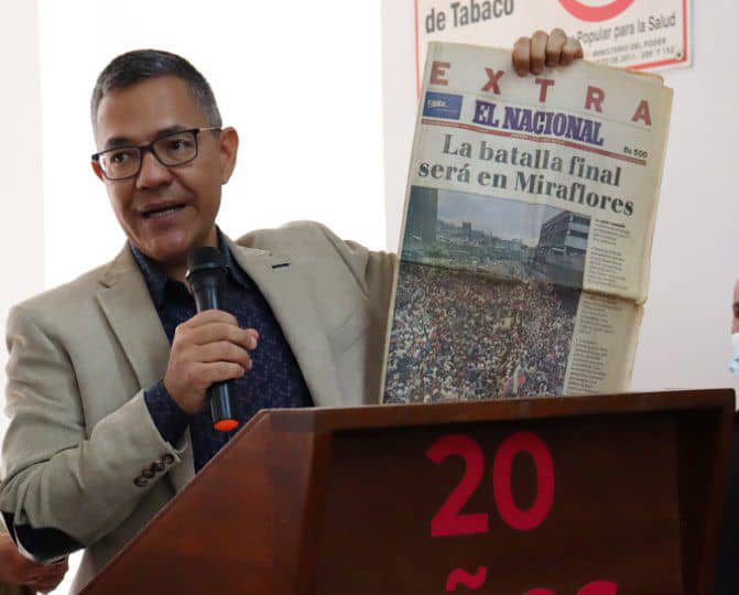 Ante ello, hizo la convocatoria para que todas las personas que tengan videos, fotos o algún otro material de esos días para que sean recogidos por la Biblioteca Nacional a fin de fortalecer la memoria histórica de esos hechos. “Porque si nos confiamos en las plataformas de Facebook Tuiter, Instagram y demás, le estamos cediendo a terceros nuestra propia memoria. Estamos privatizando nuestra propia memoria, y ellos tienen el derecho y la costumbre de jugar con eso”.
